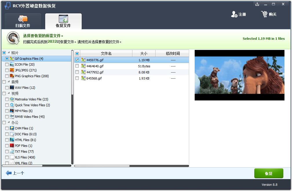 扫描完成后,您可以从外部硬盘驱动器预览所有可恢复的文件。单击"恢复"按钮以找回丢失的文件。