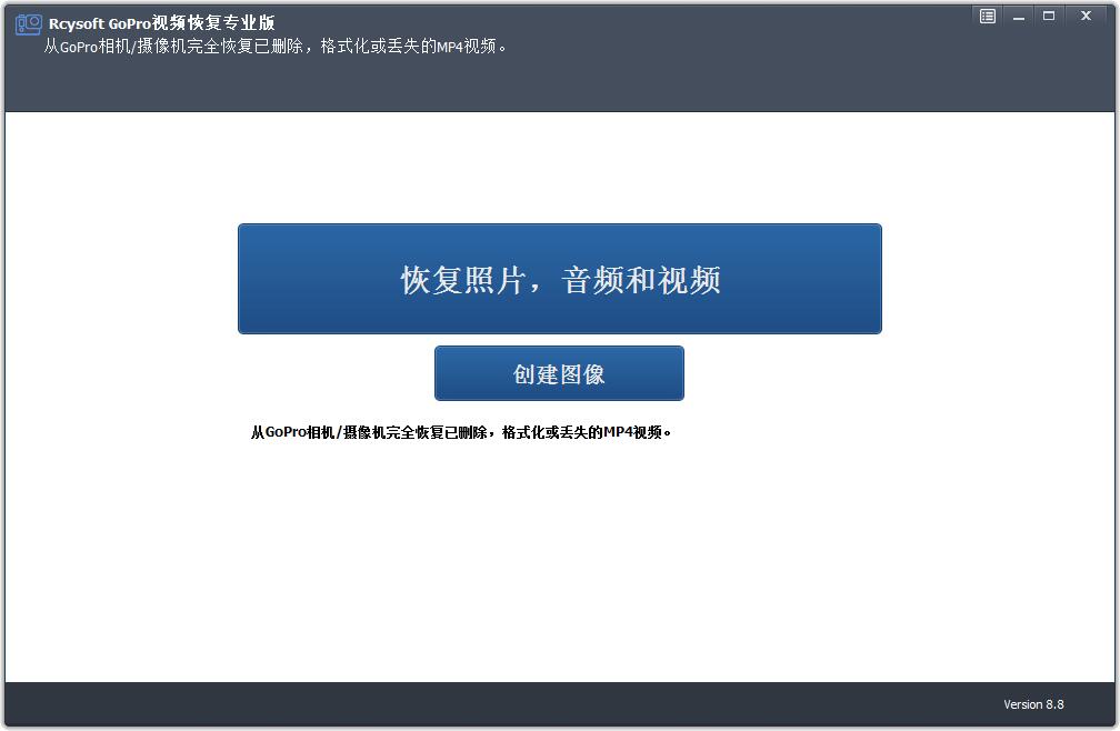 在您的计算机上下载,安装和启动Rcysoft GoPro Video Recovery Pro软件。单击"恢复照片,音频和视频"按钮。