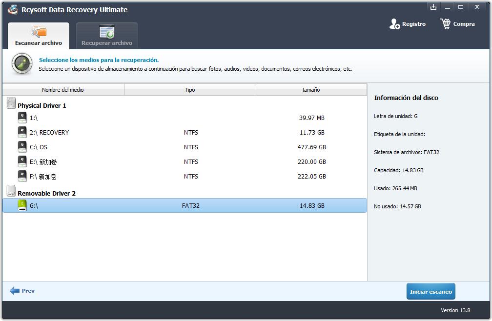 Descargue, instale e inicie Rcysoft Data Recovery Ultimate en su computadora, elija los tipos de archivos para recuperar y luego haga clic en "Iniciar".