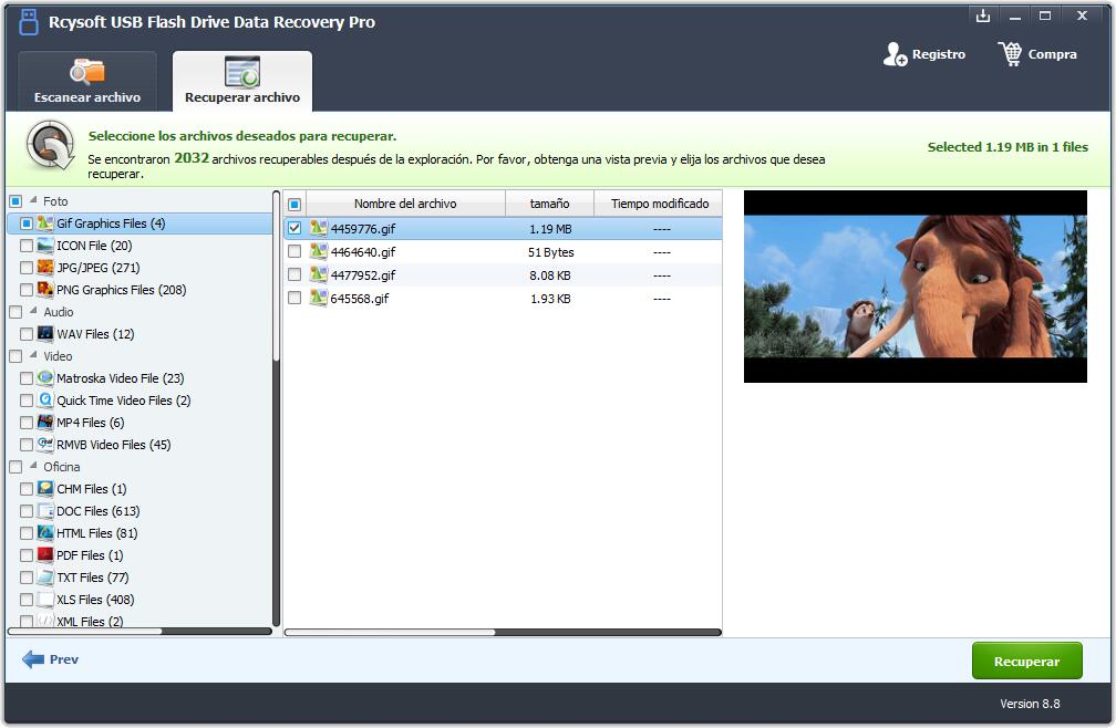 Después de la exploración, puede obtener una vista previa de todos los archivos recuperables de la unidad flash USB. Haga clic en el botón "Recuperar" para recuperar archivos perdidos.