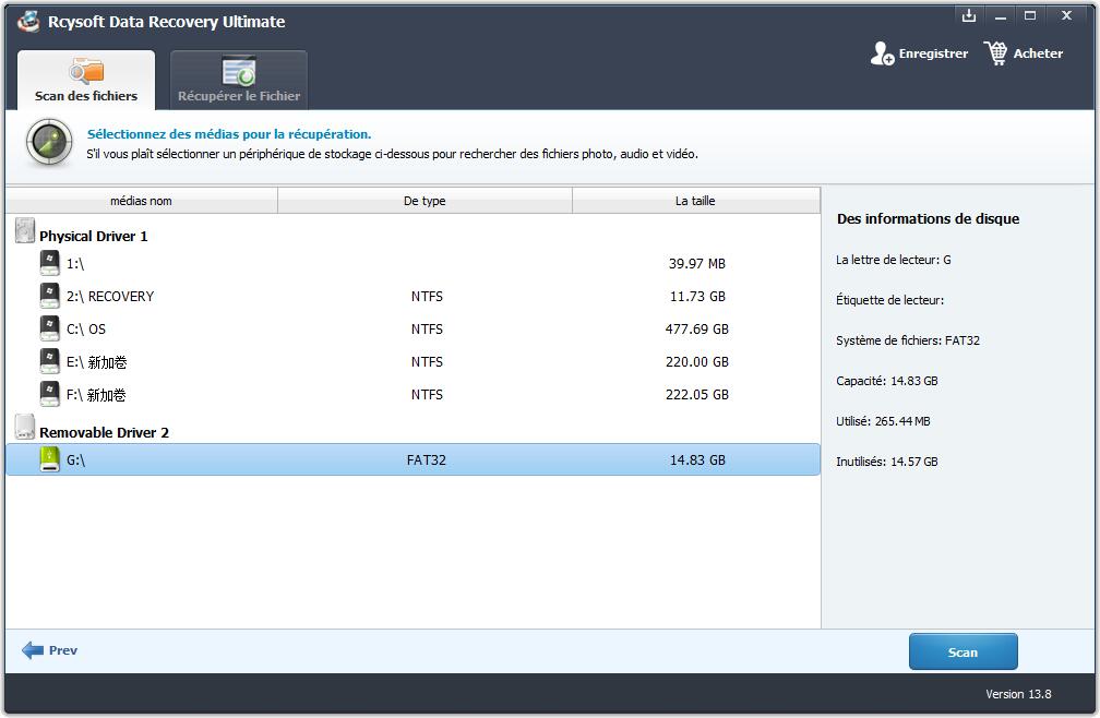 Conseils : NE sauvegardez PAS les fichiers sur la même partition de disque dur ou le même périphérique externe que celui où vous les avez perdus.