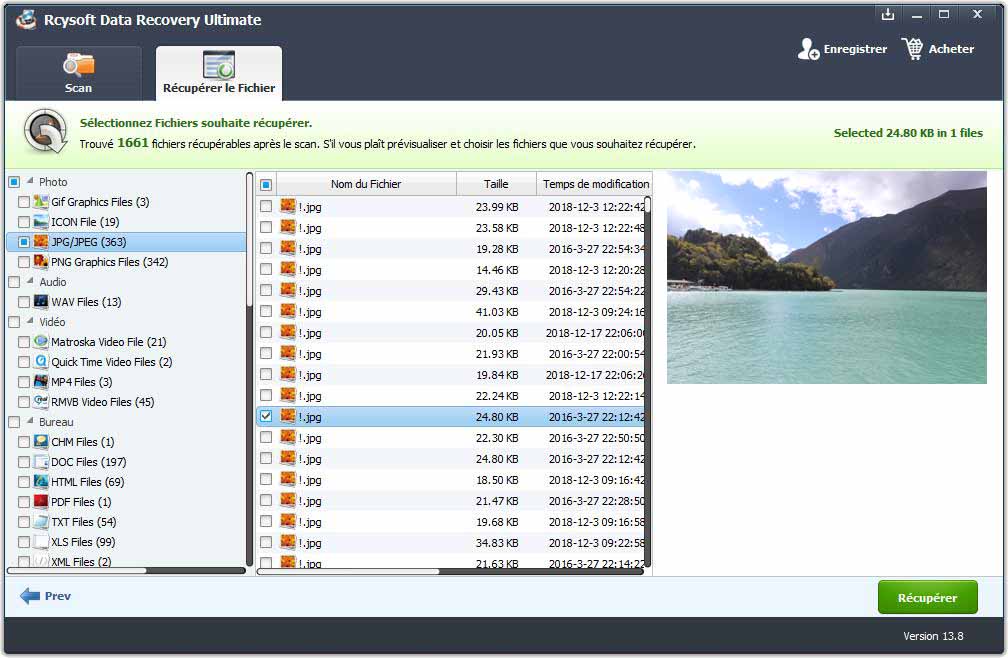 Lorsque l'analyse est terminée, tous les fichiers récupérables seront répertoriés dans le programme. Vous pouvez vérifier les détails du fichier, tels que son nom, sa taille, son type, l'heure de modification et son contenu. Sélectionnez les fichiers que vous souhaitez récupérer, puis cliquez sur le bouton "Récupérer" pour récupérer immédiatement vos données.