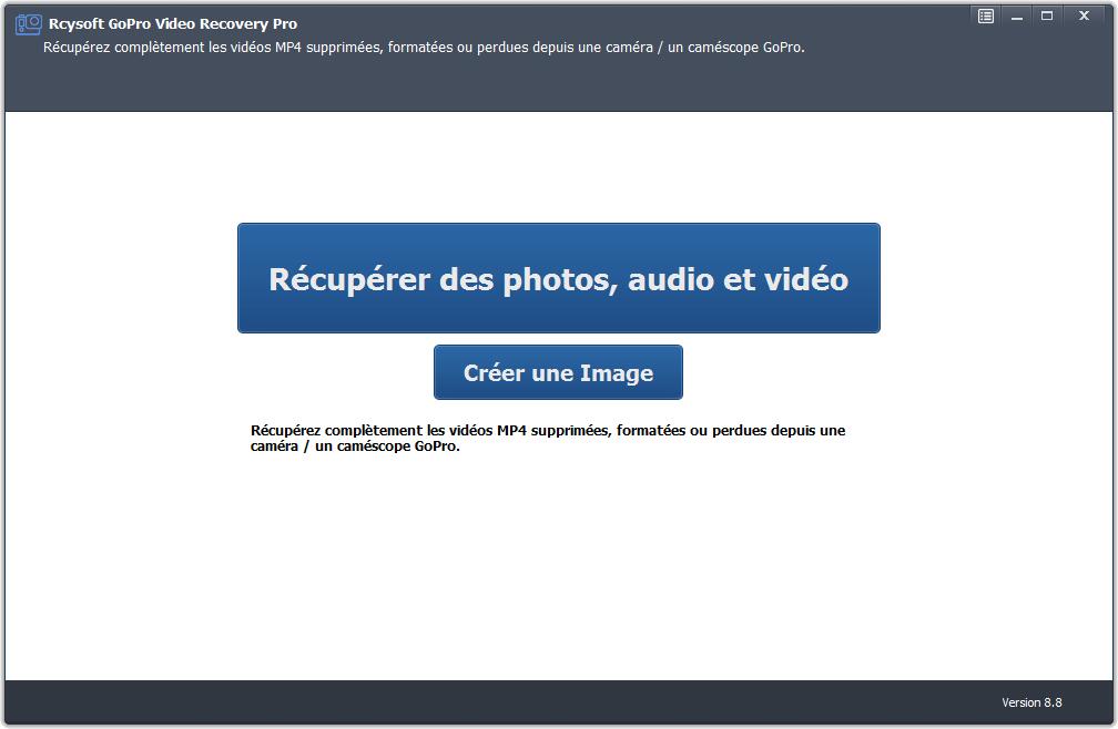 Téléchargez, installez et lancez le logiciel Rcysoft GoPro Video Recovery Pro sur votre ordinateur. Cliquez sur le bouton "Récupérer photo, audio et vidéo".