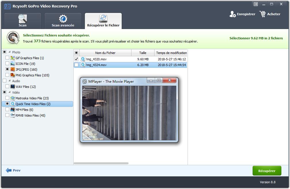 Après l'analyse, vous pouvez prévisualiser toutes les photos et tous les fichiers vidéo récupérables à partir de GoPro. Cliquez sur le bouton "Récupérer" pour récupérer les fichiers perdus.