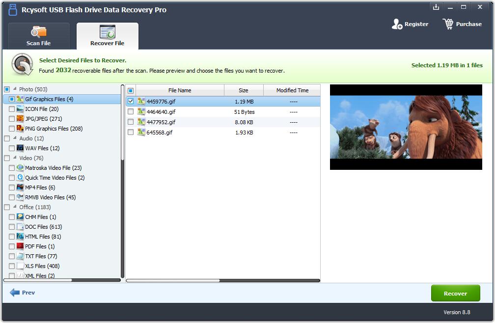 After the scan, you can preview all the recoverable files from the USB flash drive. Click "Recover" button to get back lost files.
