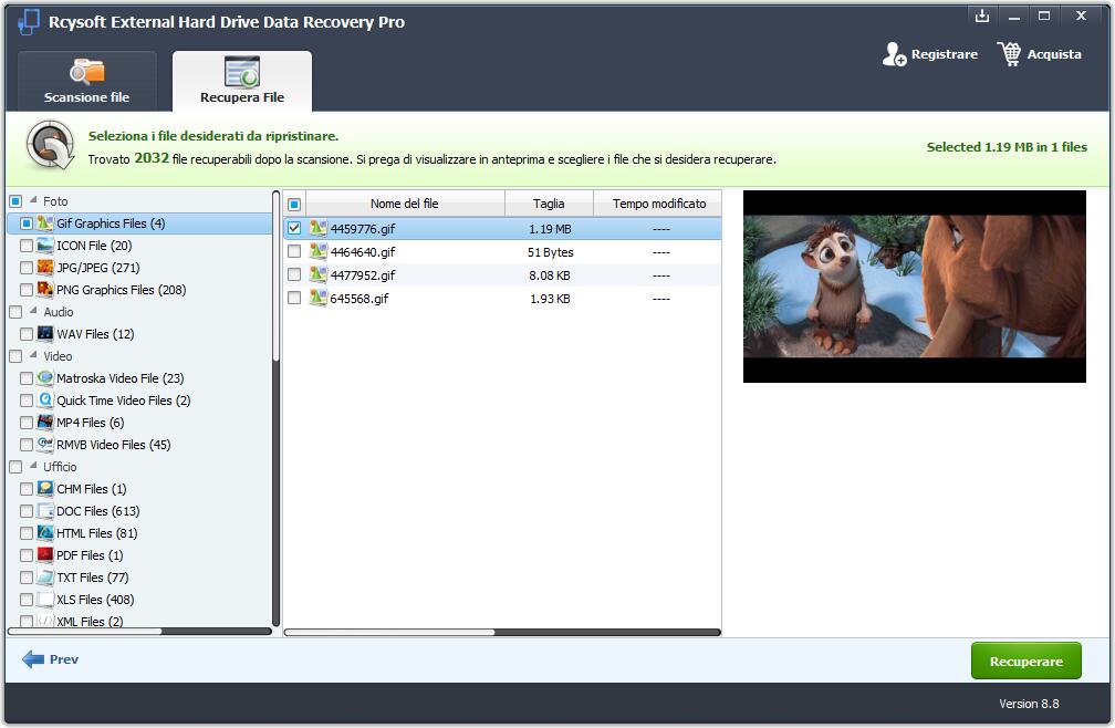 Dopo la scansione, è possibile visualizzare in anteprima tutti i file recuperabili dal disco rigido esterno. Fai clic sul pulsante "Ripristina" per recuperare i file persi.