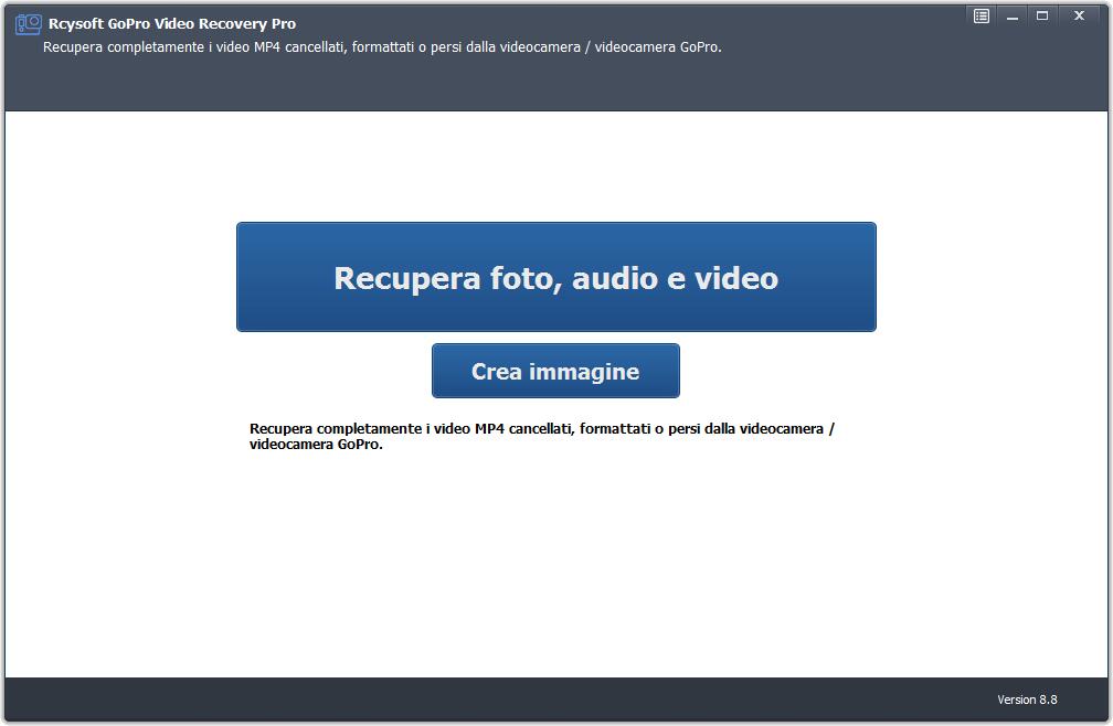 Scarica, installa e avvia il software Rcysoft GoPro Video Recovery Pro sul tuo computer. Fai clic sul pulsante "Recupera foto, audio e video".