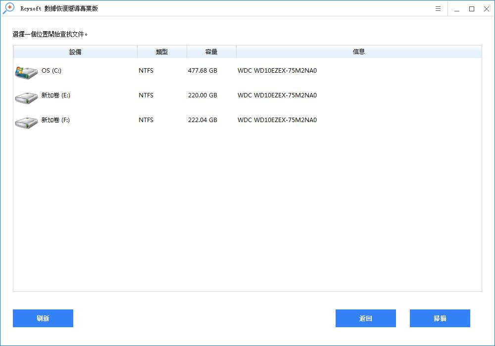 步驟3 選擇丟失數據的磁盤/分區,單擊"掃描"開始文件掃描。
