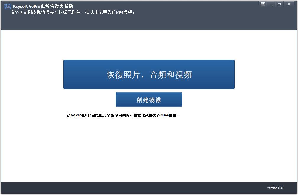 在您的計算機上下載,安裝和啟動Rcysoft GoPro Video Recovery Pro軟件。單擊"恢復照片,音頻和視頻"按鈕。